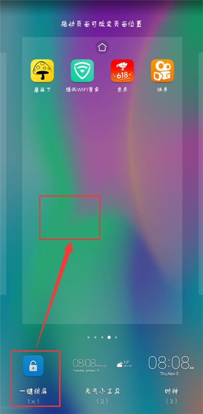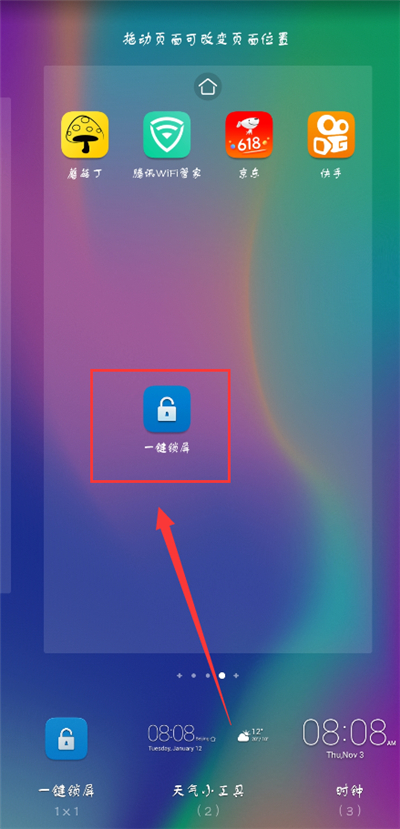3.将【一键锁屏】插件拖动之主屏幕,然后点击【一键锁屏】就可以锁屏了。