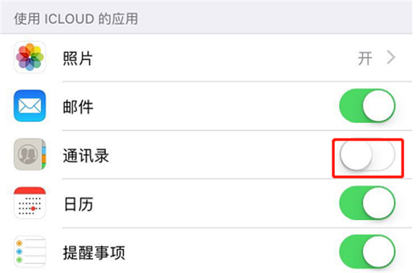 4、在“使用ICLOUD的应用”,找到️【通讯录】,开启即可。