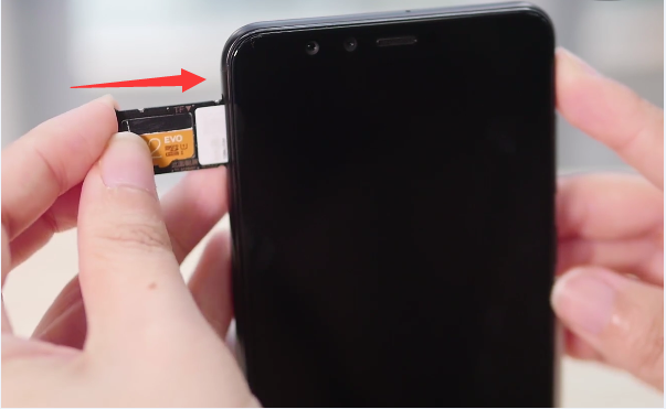 3、最后我们只需要把卡槽平稳的推回到手机卡托里就完成插卡了
