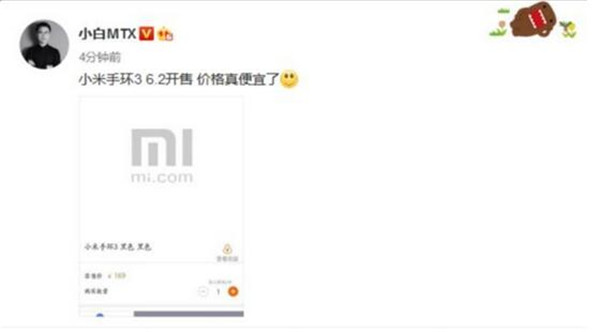 根据@小白MTX的截图来看,小米手环3售价为169元,将会在6月2日开售。颜色方面除了黑色之外相信还会有其他的多彩配色。而在外观方面,从之前的曝光图来看小米手环3相比于前两代产品也会更显圆润一些,并且功能性方面会有非常大的进步,可能会加入NFC以及离线使用功能。