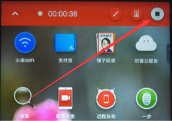 在确认完各项设置无误之后,屏幕顶部弹出一个录屏菜单,按录屏按钮后,在手机上的任何操作就会自动记录在一个视频文件中。