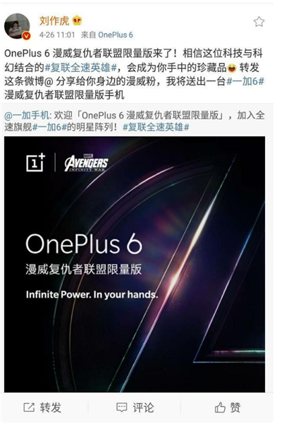 一加还与漫威官方合作,将会出一款漫威定制版手机,一加的CEO已经在微博上表示会发布此款手机,想要购买的网友也不少。