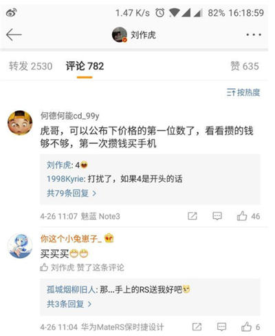 有位调皮的网友叫虎哥公布一下定制版的价格第一位,虎哥的回复简单明了“4”️,看来一加6的漫威定制版是肯定4000以上了。但是具体要多少钱还需要看发布会才能知晓了。