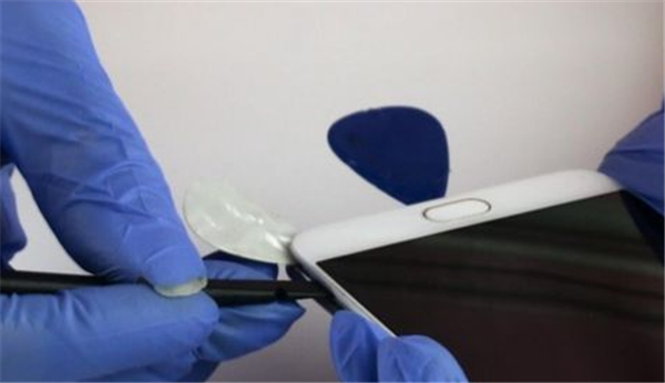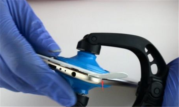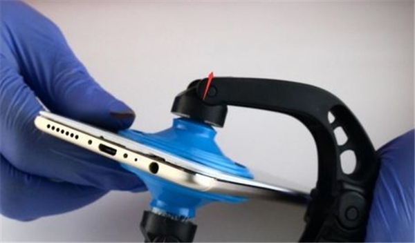 4、使用开屏器,吸住手机的两面。要保持两边的受力点在同一个位置,拉开一条缝隙。