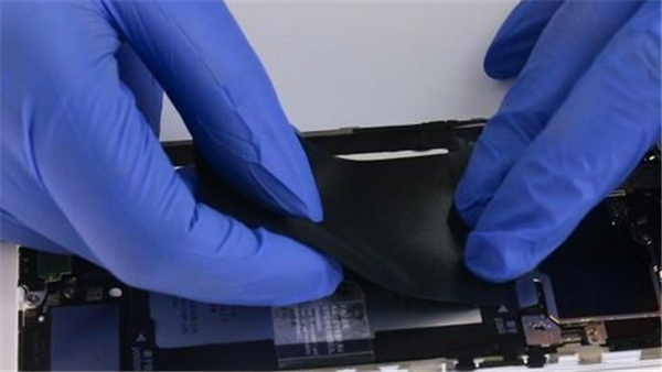 11、如果电池粘贴的特别紧,可以先用风枪加热下电池(均匀加热)。风枪与电池距离约3至5厘米,风枪温度150°,直风,最大风速。如果您没有风枪,可以使用电吹风加热。
