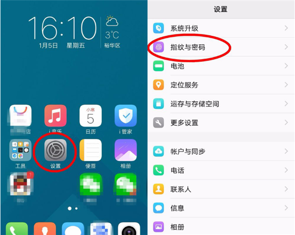 1)打开手机的【设置】,进入设置菜单后再找到【指纹与密码】选项并打开。(如下图)