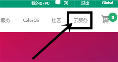 将OPPO手机“查找手机”开关打开后,假设你的手机丢失了;你可以登录OPPO手机官网,选择点击“云服务”,如图所示