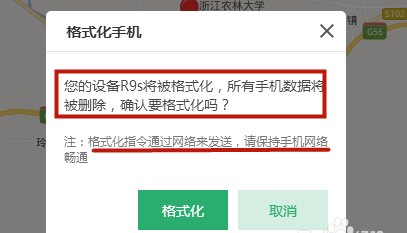 13、格式化功能:假设你的手机找不回来了,又不想信息泄露,可以使用此功能,发送指令自己格式化手机,销毁数据从而保护信息数据安全,但必须保持网络畅通,因为指令是通过网络发送的,这是一个软肋;如果发现手机丢失,一定要第一时间锁定和格式化手机。