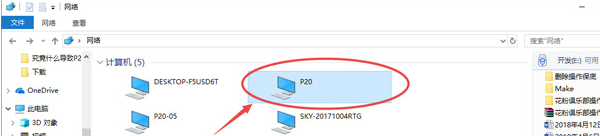 5、点击“网络”→找到你自己的设备(在这里我设置为P20),双击进入,输入之前设置好的用户名、密码→确定,然后我们就可以直接访问手机里的文件了。
