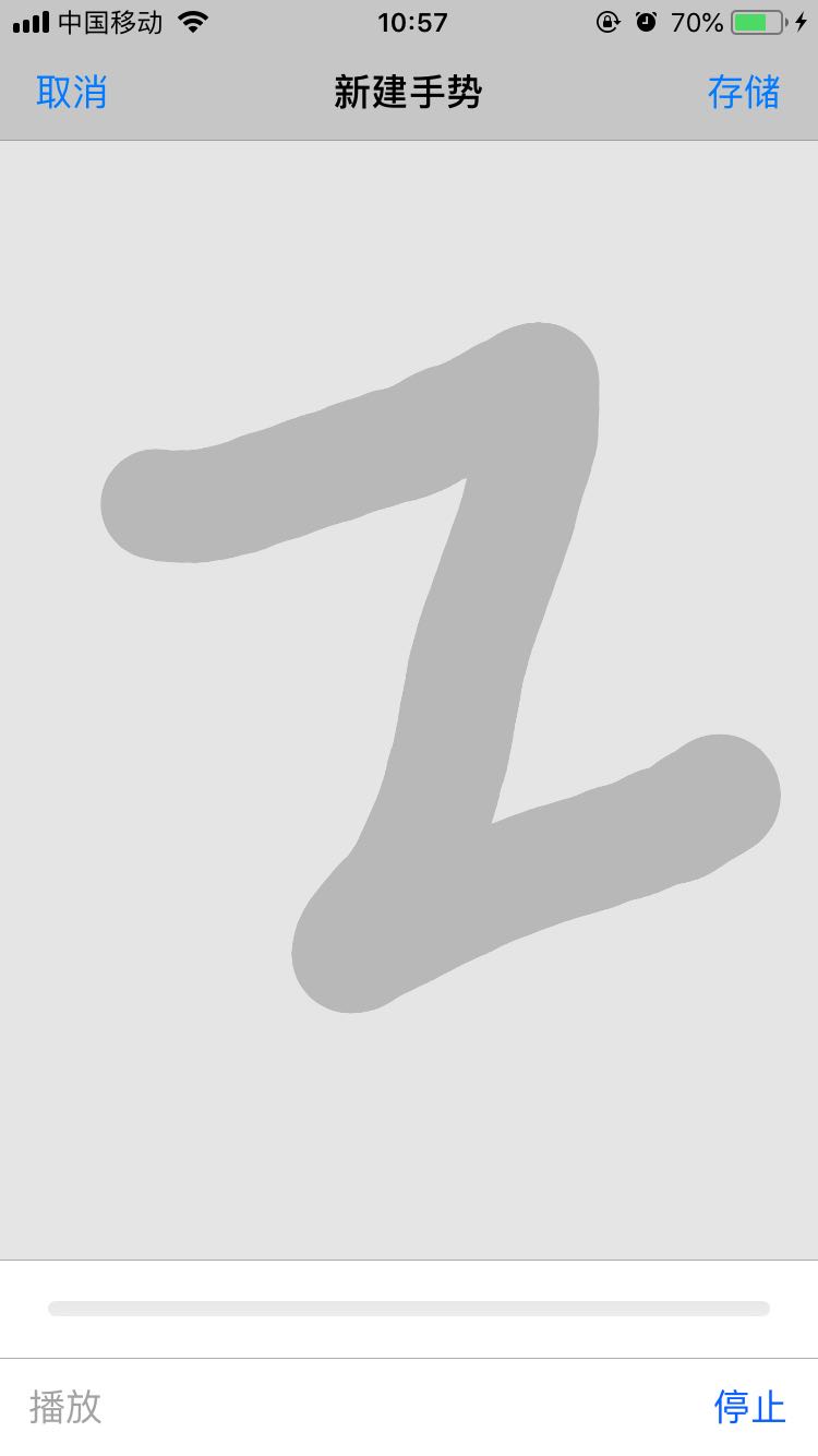 5,当结束手势设置之后,我们需要点击顶部的【存储】按钮即可,随后进行手势命名,值得一提的是,果粉们可以在iphone8手机上设置多个手势操作。