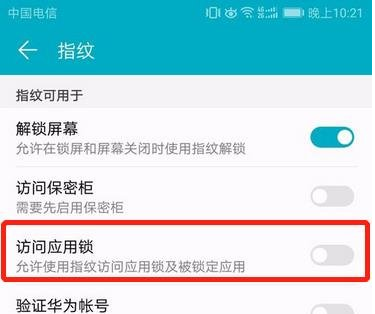 2、点击️【指纹】之后输入锁屏密码,进入指纹菜单里面,我们就能看到一个️【访问应用锁】。