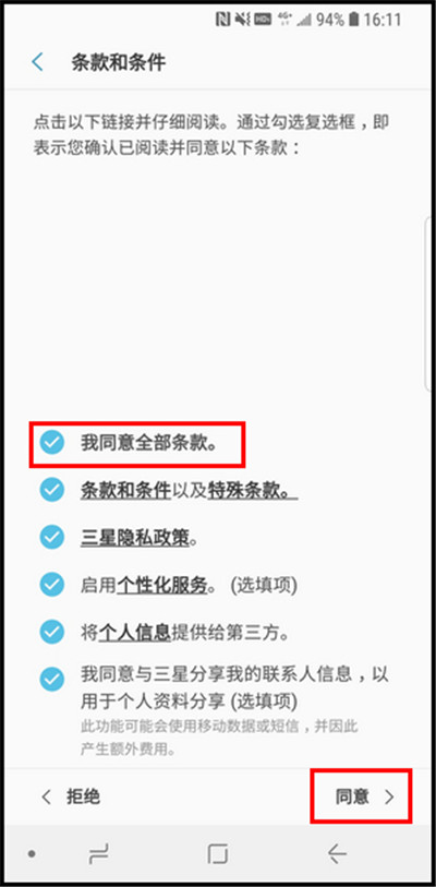 8.勾选“我同意全部条款”后,点击【同意】。
