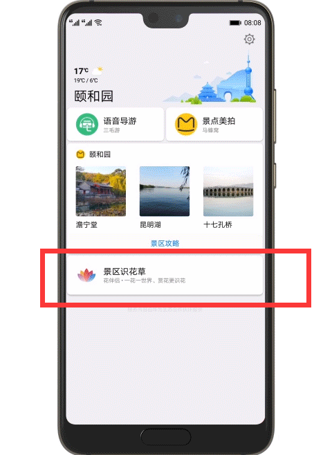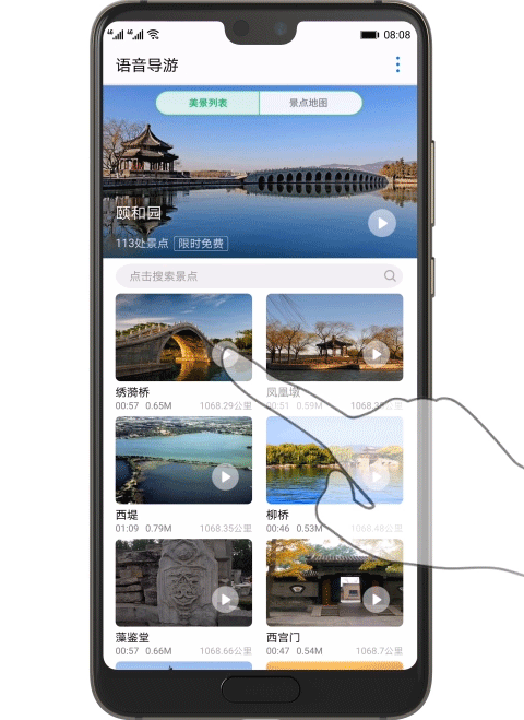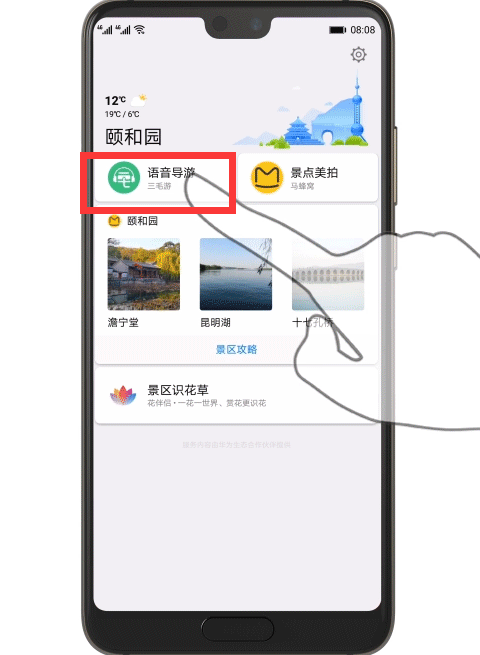 华为P20语音导游怎么用?首先,告诉大家这不是一个APP,是置于手机内的一个基于位置触发的特性。当您靠近景区时,它才会弹出来,如下图,点击️【语音导游】。