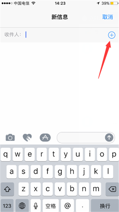 2.进入编辑新信息页面后,点击右上角的添加键,这个是添加收件人的。点击进入。