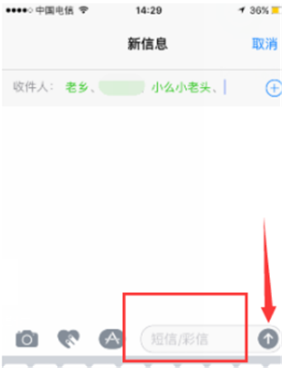 4.收件人添加完成后,编辑要发送的短信。短信编辑完成,点击旁边的向上↑箭头就可以发送短信了。
