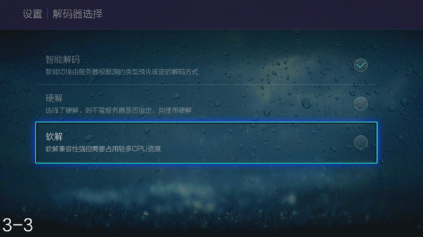 那么如何才能解决这个问题呢?其实视频解码的方式有两种:硬解码和软解码,当硬解码能力不足时我们可以把解码方式切换到软解码提高兼容性。也可以从沙发管家替换一个同类型的视频软件,你的电视用HDP直播有问题或许用小微直播就很正常,他的电视用小微直播兼容换成HDP直播可能就很完美。从沙发管家下载其他应用很简单,下面重点讲解一下如何给视频软件切换解码方式。