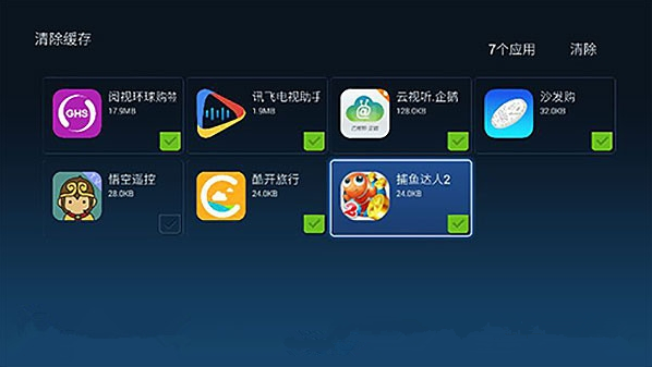 步骤三:在清除缓存界面中,用户只需选择需要清理缓存的应用软件,点击即可进行清理。如:《捕鱼达人2》。