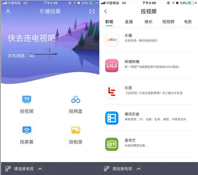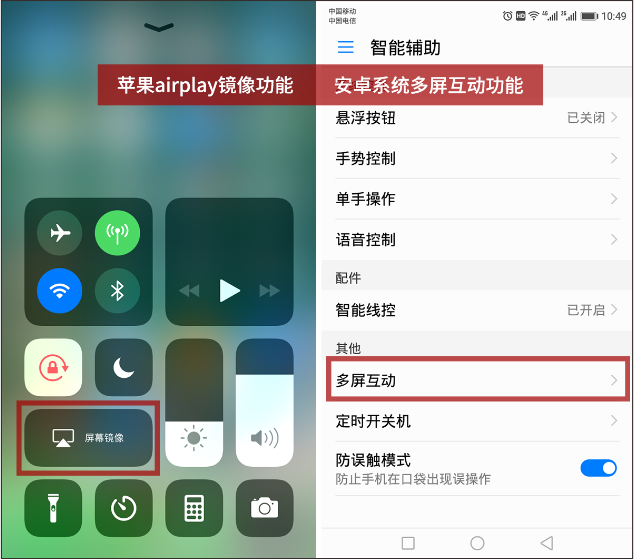 这种投屏方式简单易操作,不需额外付费,是绝大多数人的选择。但手机系统自带投屏工具的最大缺点就是必须连接WiFi,当你的大屏设备并非智能电视时,便没了用武之地;再者,当你在使用AirPlay或多屏互动进行同屏时,手机不能退出正在播放的视频或音乐,一旦退出,大屏设备上的画面也会自动消失。