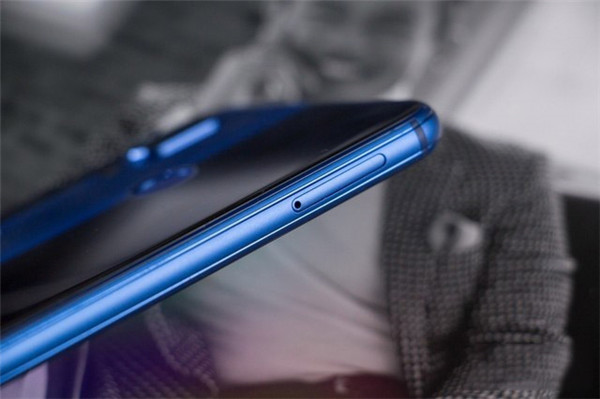 第二步:华为nova3e的卡槽位于机身左侧,使用卡针垂直插入机身左侧卡托旁边的小孔,稍微用力一顶,就可以弹出卡托,之后将起抽出取下。