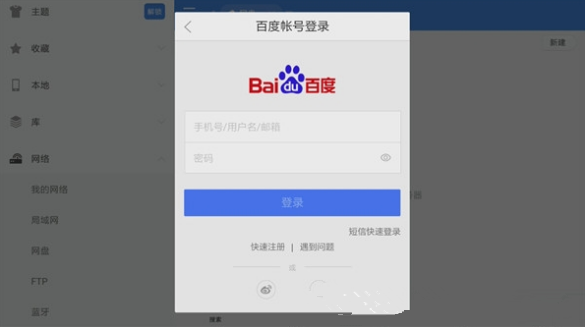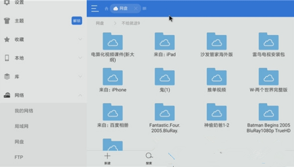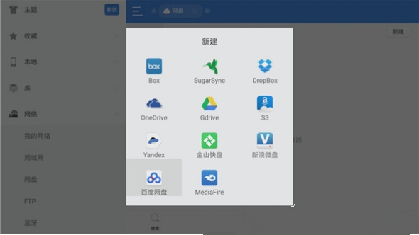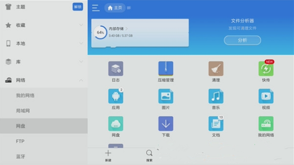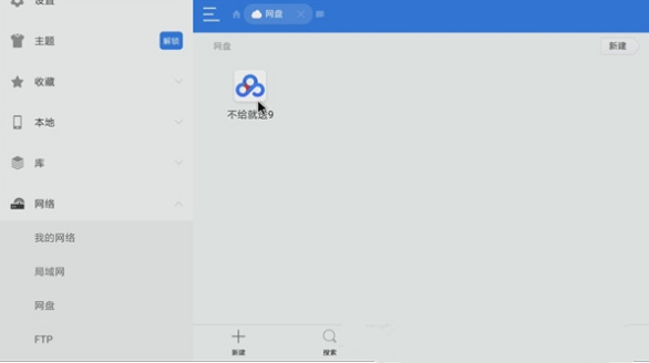 打开ES文件浏览器,通过左侧功能栏找到网络>>网盘选项