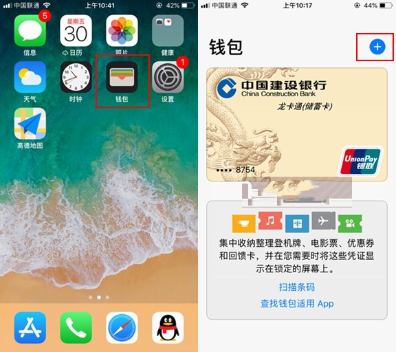 1、首先我们在iPhone设备上找到【钱包】应用,点击进入,进来之后点击右上方的【+】符号,如下图所示。