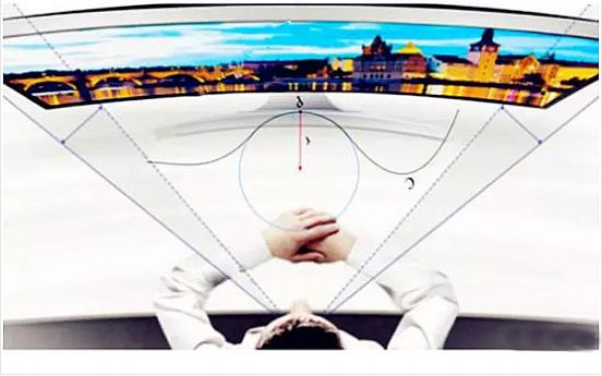 而弯曲的屏幕自带弧形图像(如上图),省去“脑补”过程,看起来自然更加舒适。在观影的时候,曲面能够营造出“沉浸感”,观看时营造出身临其境的感觉。