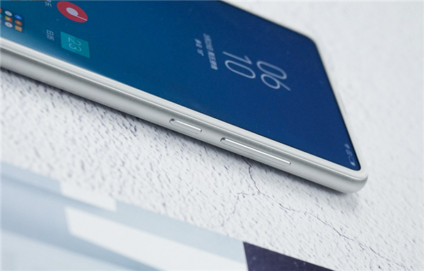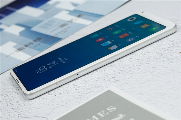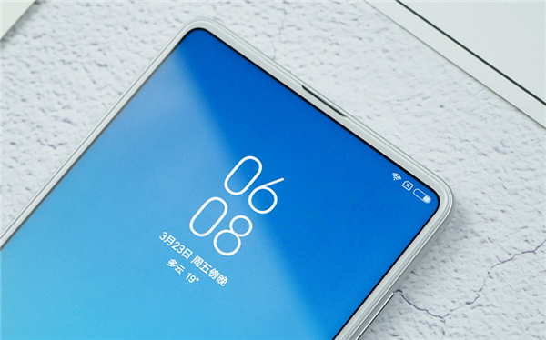 前置相机位于机身右下角,默认是略显尴尬的仰视角度拍摄,实测无碍人脸识别,但自拍需要翻转手机。顶部为导管式隐藏听筒,两侧隐藏了超声波距离传感器,这些都是MIX 2设计的直接传承。