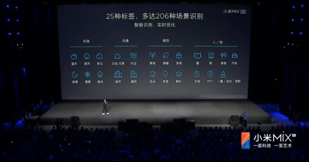 与此同时,小米MIX 2S的相机还支持AI场景识别。当我们拍摄花朵时,取景框下方会出现一个花朵的标识,如果我们拍摄建筑时,取景框下方立刻变成了建筑图标。可以智能识别多种拍摄场景并自行调整相机参数,避免出现过曝、偏色、还原真实场景,确保最佳成像效果。