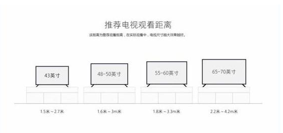 很多电视在产品介绍页都会给出不同尺寸电视的最佳观看距离,不过它们的参考意义都不大。比如小米推荐的65-70英寸最佳观看距离是2.2-4.2米,这个距离大部分客厅环境都能满足,另外它还提示“该距离为推荐观看距离,在实际观看中,电视尺寸越大效果越好”,说白了还是直接往大了买。