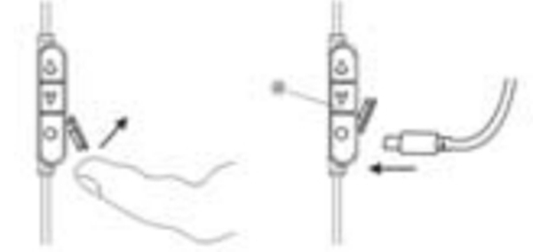 首先我们找到耳机的充电口,在麦控附近,具体如下图: