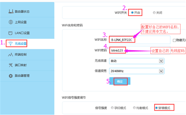 配置路由器无线名称以及密码。