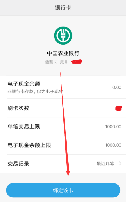 2、绑定银行卡:将️银行卡放到手机背面-️绑定该卡️-下一步,然后输入交易密码和手机号码(绑定银行卡的手机号码),即可开通。开通后,双击home键指纹解锁即可支付(或者点击小米pay)