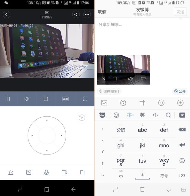 连接成功后,点击图标即可进入监控界面,当然,也可以直接在手机桌面上添加快捷方式,可一键打开监控,在监控主界面,有多项操控按键可以让大家对摄像机进行操控,如暂停,静音,清晰度选择等等,值得一提的是,米家智能摄像机云台版支持小窗口播放,点击小窗口模式后,可以将其随意拖拽于任何应用之上,方便你一边工作,一边监控。