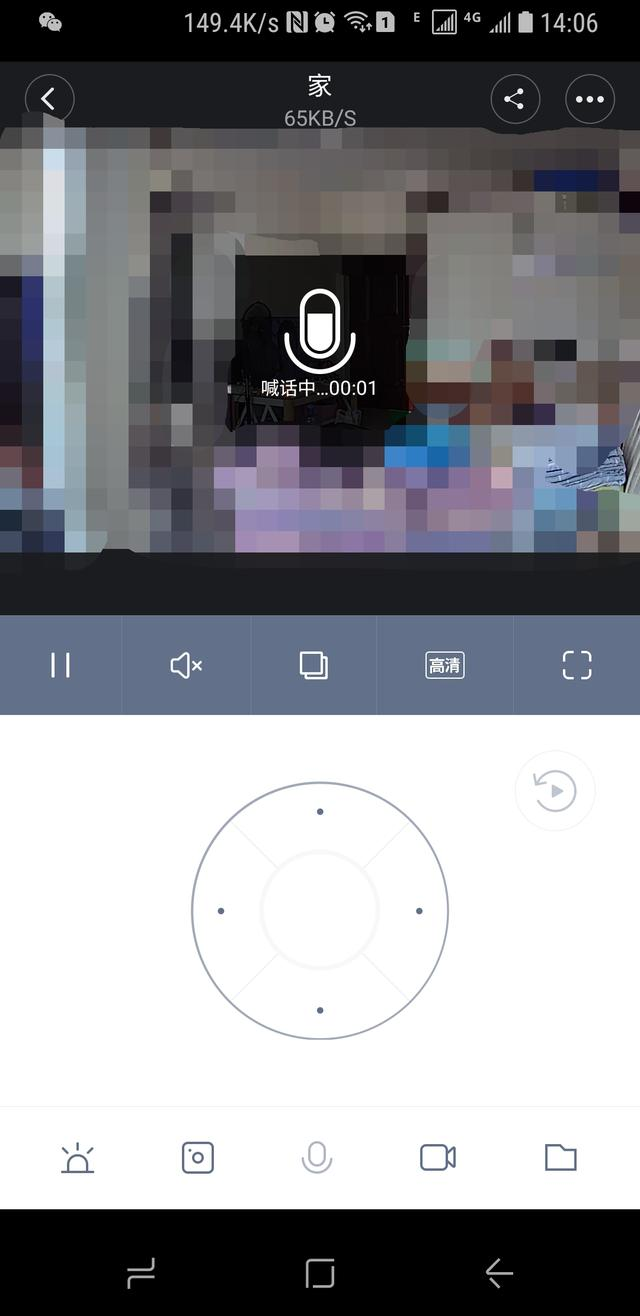 上面我们提到了机身背部的外放喇叭,这里来揭晓一下他的作用,如上图所示,如果家中进入了不法分子,在接到手机通知之后,我们不仅可以远程监控他,还可以点击界面中的麦克风标志进行远程喊话进行威慑。