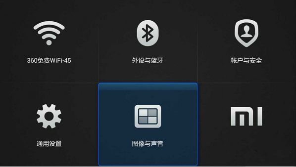 2.在小米盒子设置模块中,我们可以对小米盒子的网络连接、外设蓝牙、账户安全、通用设置、图像声音等进行设置。而此次电视之家小编为大家介绍的分辨率设置,需要大家选择界面下方的【图像与声音】选项。