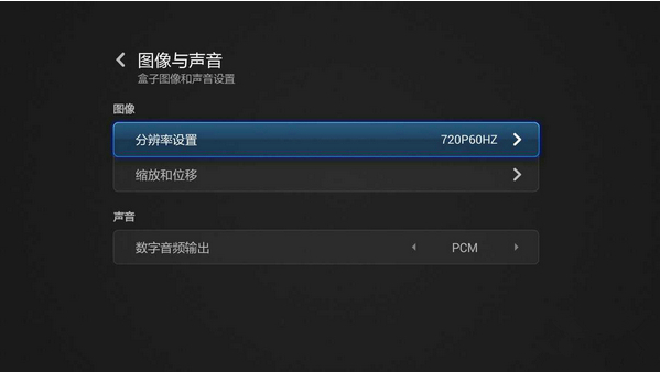3.在图像与声音设置模块中的第一项就是小米盒子分辨率设置选项。