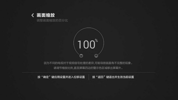 在这里小编要提醒各位,若是在小米盒子在显示时并未铺满整个屏幕,从而导致画面不完整的现象,我们可以选择通过画面的缩放和位移来进行调整。