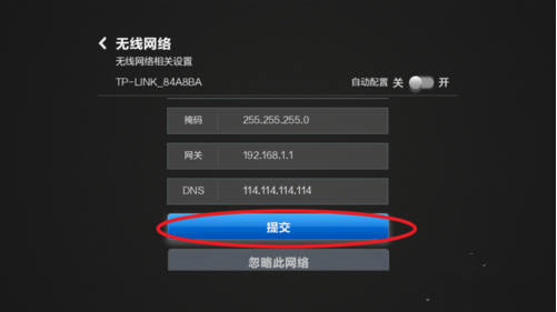 选择最下面DNS栏目,按确定按钮进入修改界面,然后输入适合自己的DNS。输入完成后,点击"提交"按钮即可。