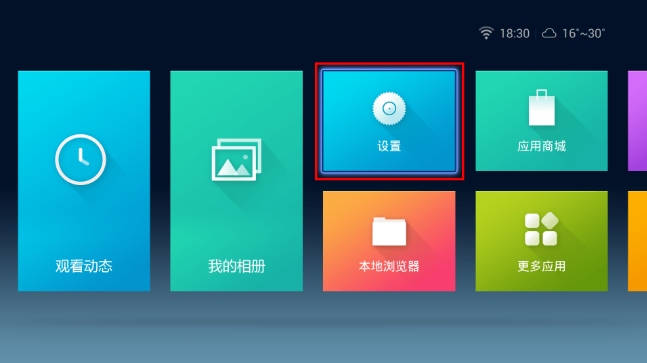 首先,打开泰捷盒子的主页,在主页选择”设置“。