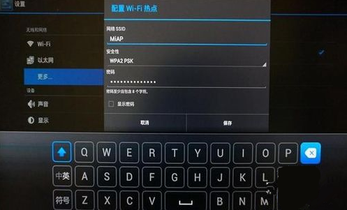 接着开始点击配置WIFI热点,设置我们的WIFI名称以及WIFI的密码,配置好WIFI热点的名称和密码后,点击“保存”,一定要点击保存按钮,不然是不会生效的。