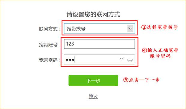 系统会自动检测用户的上网方式,如果是宽带拨号注意区分中英文输入、字母大小写、后缀是否完整等。