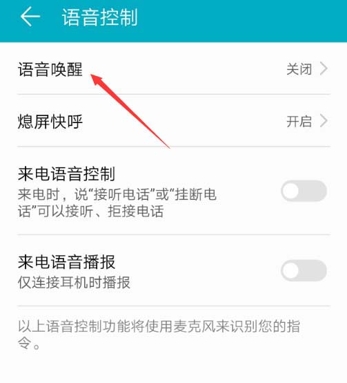 4、点击第一个"️语音唤醒"选项;