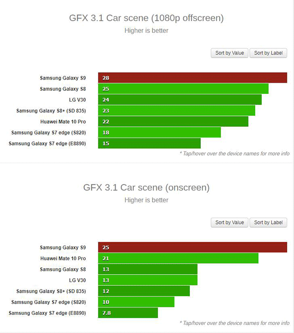 在图形性能方面,虽然较之去年发布的安卓旗舰产品,三星S9 Exynos9810版的提升并不是很大,但是依然是领先于目前安卓阵营中的其他手机。