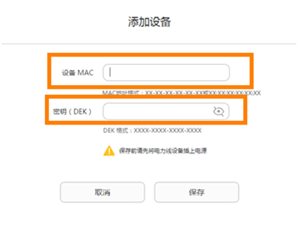 输入子路由铭牌上的 MAC 地址和 DEK 码即可。