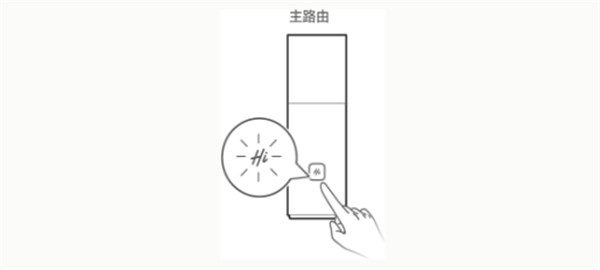 观察主路由的 Hi 灯,等待约1分钟后它将自动变为橙色慢闪,按一下主路由的 Hi 按键后松开,Hi 灯将闪烁加快。等待约15秒,当副路由的 Hi 灯变为白色常亮时,即表示配对成功。
