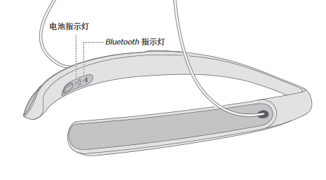 状态指示灯位置Bluetooth和电池指示灯位于右方颈带的内侧