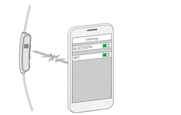 使用NFC配对1. 打开耳机电源后,解锁设备并打开Bluetooth和NFC 功能。有关这些功能的更多信息,请参考您的设备用户指南。
