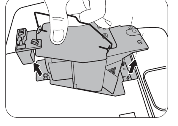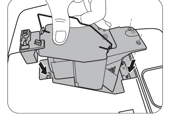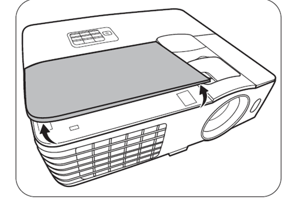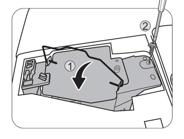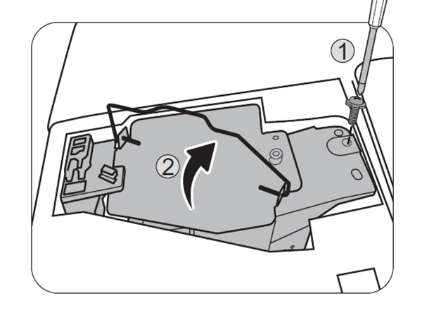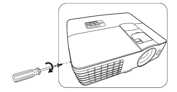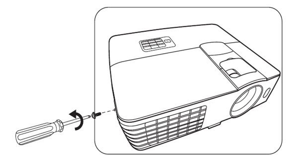 2、拧开投影机侧面固定灯泡罩的螺丝,直到灯泡罩松开;