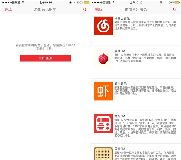 但是在此之前,需要选择你常用的音乐服务,登录到你的账户,那么你所收藏的音乐均会出现在 SONOS 的 App 中。