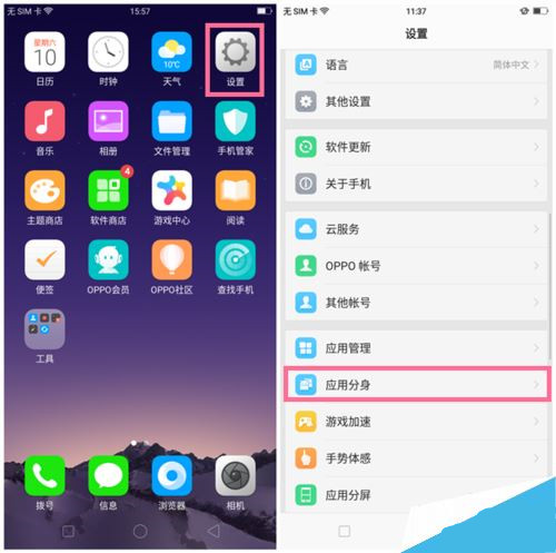 OPPOA83双开应用设置教程1.通过桌面的【设置】,找到【应用分身】。